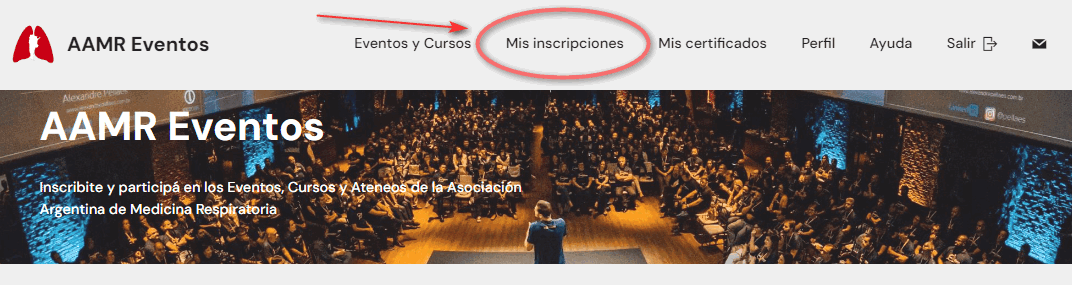 Pero en todos los casos podrás ver esta información ingresando a la sección "Mis inscripciones", donde verás el listado de todos los eventos a los que estás inscripto y, en el caso de que estos incluyan acceso virtual, verás allí el link, código de acceso, etc. etc.